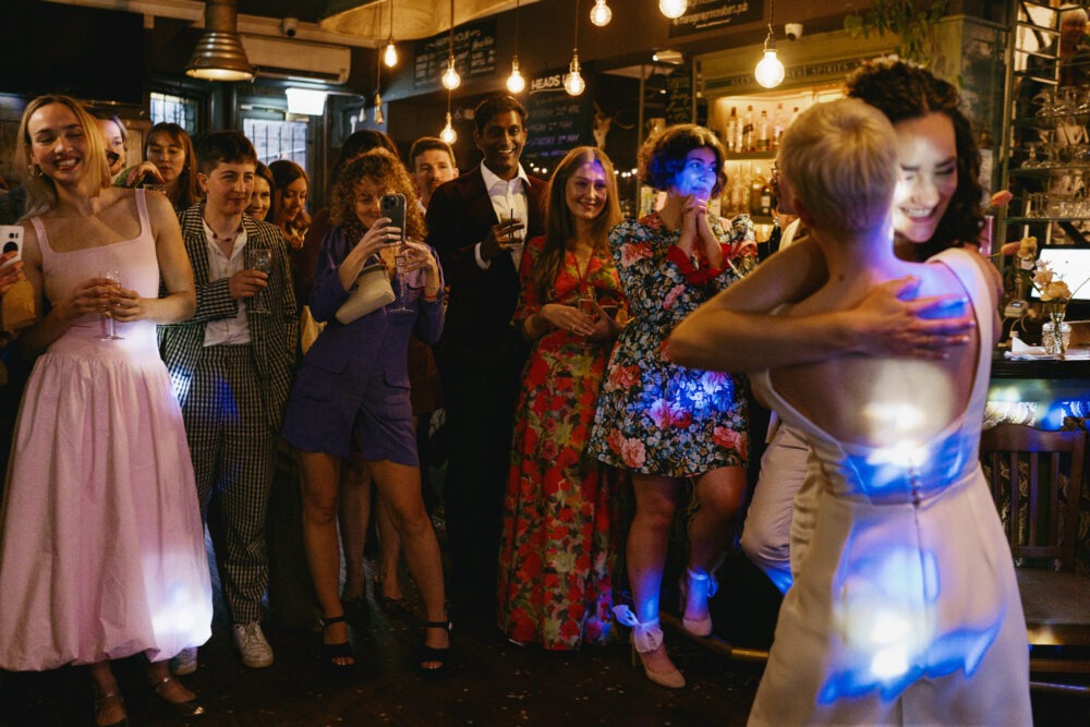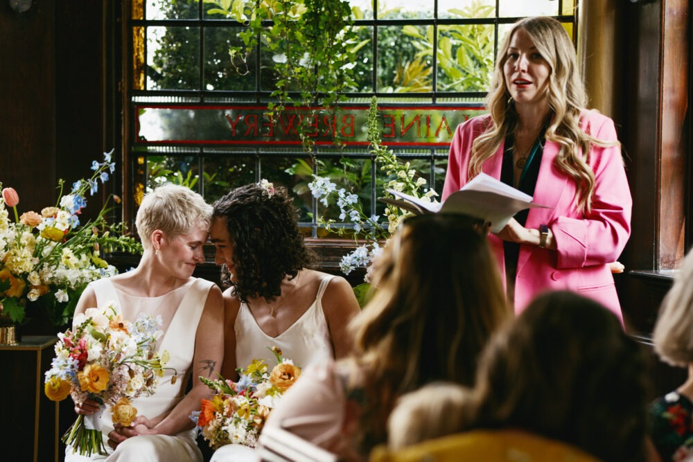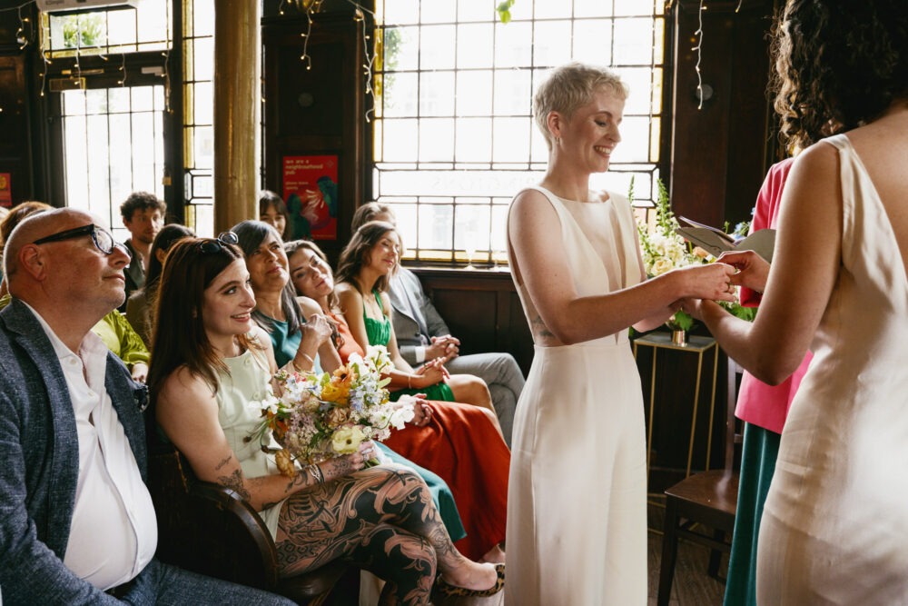 They got ready at Redchurch Townhouse in separate rooms before having an emotional first look. After a taxi ride to the Prince Albert, the girls entered a room so full of love. There’s love in the room at every wedding, but sometimes it feels different. There was such an emotional charge in the air you could almost see and hear it crackle. The personal humanist ceremony was delivered by the fabulous Roxy Celebrates Love.