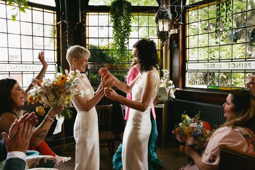 Amy & Helena, married at the Prince Albert pub in Camden, April 2025